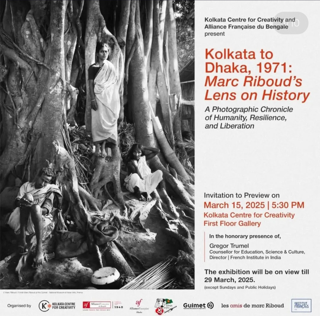 Lucky to have attended the opening of the photographic Exhibition, 'Kolkata to Dhaka1971: Mark Riboud's Lens on History' at KCC last Saturday evening. It was first shown in Dhaka in 2022 and is only apposite that it should have travelled to Kolkata, given the city's involvement with the Bangladesh Liberation War of 1971. Posting some of the exhibits, with captions from the show.